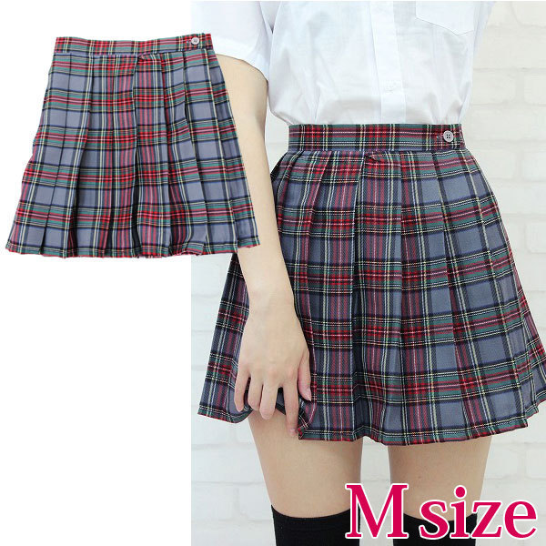 女子校生コスプレの定番アイテム!キュートなグレーのチェック柄プリーツスカート(M)。一枚持っていると何かと便利なお役立ちアイテム!チェック×プリーツの最強タッグで、可愛らしさをアピール出来ちゃう制服コスチュームです。※水洗い不可、塩素系漂白剤による漂白不可、アイロンは中温で当て布使用、ドライクリーニング可、色落ちの可能性があります。※こちらの商品は在庫の状況によりお届けまでに4日〜7日程度かかる場合がございます。