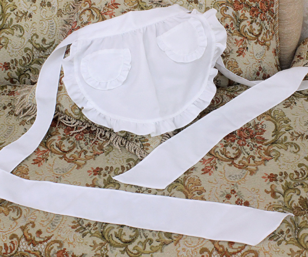 ふんだんに使われたフリルがキュート!色々なメイド服に合う白のショートエプロンです。ミドルスカート、ミニスカート両方のメイドコスチュームに合わせて使えます。自分で作ったコスプレ衣装や、今持っているメイド衣装のエプロンと交換して着るのもいいですよ!※水洗い可、塩素系漂白剤による漂白不可、アイロンは中温で当て布使用、ドライクリーニング可※こちらの商品は在庫の状況によりお届けまでに4日〜7日程度かかる場合がございます。