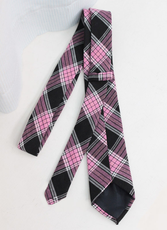 キラキララメ入り!斜め格子がお洒落な、ピンクチェックのスクールネクタイです。手軽なマンネリ対策として、コスプレ小物をチェンジ!襟元のリボンを、白シャツに映える大人可愛いチェックのネクタイに変えてみませんか?※水洗い不可、塩素系漂白剤による漂白不可、アイロンは中温で当て布使用、ドライクリーニング、色落ちの可能性があります。※こちらの商品は在庫の状況によりお届けまでに4日〜7日程度かかる場合がございます。