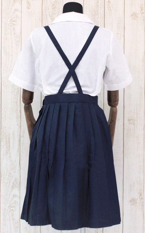 丸襟&吊りスカートがちょっぴりレトロな制服コスプレ。長め丈の紺色スカートにサスペンダーをつけたレトロガーリースタイル!丸襟の半袖シャツと細めの赤リボンコンビで、雰囲気たっぷりに仕上げた制服コスチュームです。※水洗い不可、塩素系漂白剤による漂白不可、アイロンは中温で当て布使用、ドライクリーニング可、色落ちの可能性があります、ご注意ください。※こちらの商品は在庫の状況によりお届けまでに4日〜7日程度かかる場合がございます。