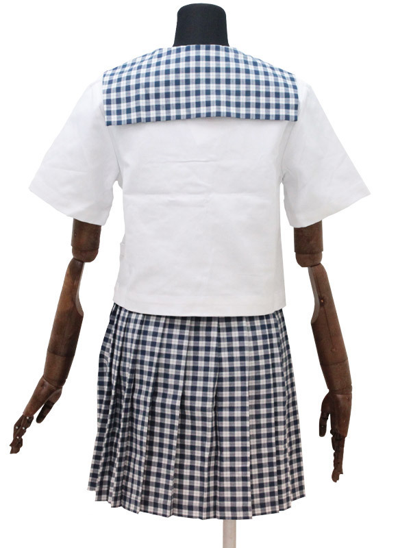 ギンガム風のチェックが爽やか!上品なムードをかもし出すセーラー服コスチューム。●真っ白なブラウスに映える蝶デザイン入り金ボタン●細かなチェック柄で夏らしく清涼感たっぷり●襟とお揃い柄のスカートでエレガントな統一感。暑い日差しの中でもクールに着こなせちゃいそう!お嬢様のような清楚な雰囲気が漂う夏用制服です。※水洗い不可、塩素系漂白剤による漂白不可、アイロンは中温で当て布使用、ドライクリーニング可、色落ちの可能性があります、ご注意ください。※こちらの商品は在庫の状況により、お届けまでに4日〜7日程度かかる場合がございます。