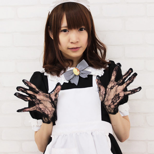 プラスするだけでコーデがワンランクアップ♪繊細な総レースのショート手袋。●長袖でも着けやすい手首丈●シックな装いのブラックレース●ナイロン素材100%のフリーサイズ。いつものコーディネートに加えるだけでエレガントになる総レース仕様!パーティードレスだけでなく、メイド服などのコスチュームにも最適なショートグローブです。※水洗い可、塩素系漂白剤による漂白不可、ドライクリーニング可。※こちらの商品は手袋のみの販売となります、画像のメイド服等は付属しません。※こちらの商品は在庫の状況によりお届けまでに4日〜7日程度かかる場合がございます。