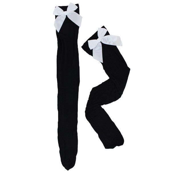 商品番号:cm1006 リボン付きニーハイ 黒×白リボン