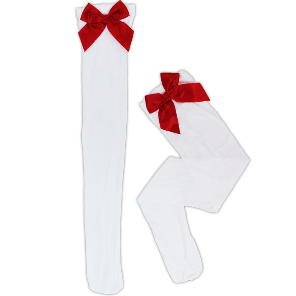 商品番号:cm1008 リボン付きニーハイ 白×赤リボン