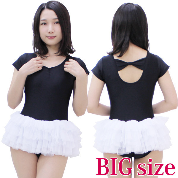 商品番号:cm1058 チュールスカート付き半袖レオタード(後ろリボン) 黒×白 BIG