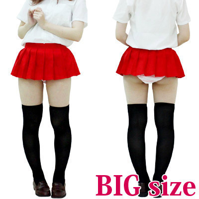 ビビッドな赤スカートで目立ち度バツグン!超マイクロミニ丈の無地プリーツスカート(BIGサイズ)。女子校生の制服コスプレには欠かせない定番のプリーツスカートですが、この絶妙なスカート丈はなかなか無い逸品。見せパンと併せれば可愛さも倍増!白シャツで清楚に、ポロシャツとあわせてカジュアルに!ブレザーやカーディガンとあわせてもGOOD♪様々なイベント用のコスチュームに使える制服スカートです。※水洗い不可、塩素系漂白剤による漂白不可、アイロンは中温で当て布使用、ドライクリーニング可、色落ちの可能性がありますのでご注意ください。