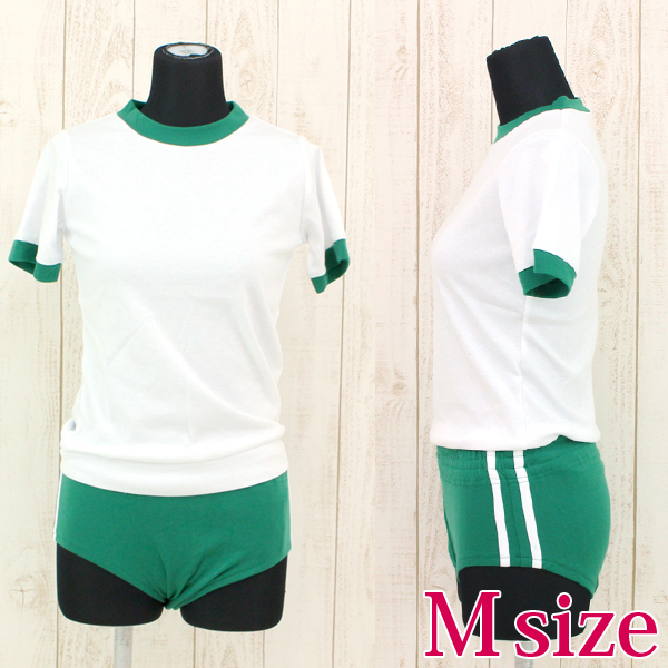 人気の体操服コスプレに新色グリーンの上下セットが登場しました♪白と緑の色使いは可愛く、すべすべとした生地は伸縮性があり着心地も抜群!緑のブルマはサイドに2本の白いライン入りでちょっぴり本格派♪洗濯時は手洗いも可能です。※手洗い可、塩素系漂白剤による漂白不可、アイロンは中温で当て布使用、ドライクリーニング可、色落ちの可能性があります。※こちらの商品は在庫の状況によりお届けまでに4日〜7日程度かかる場合がございます。