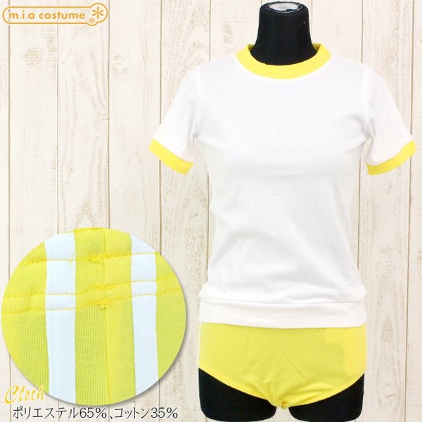 昔懐かしい体操着に身を包む♪男性用の体操服コスプレ。穿き心地の良いウエストゴムで仕立てたイエローのブルマに、トップスを合わせたシンプルな体操服コスプレです。※手洗い可、塩素系漂白剤による漂白不可、アイロンは中温で当て布使用、ドライクリーニング可、色落ちの可能性があります。※こちらの商品は在庫の状況によりお届けまでに4日〜7日程度かかる場合がございます。