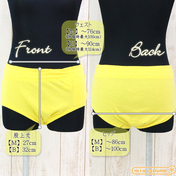 Mサイズ W〜76cm(伸縮時最大100cm)・H〜86cm ブルマ:股上丈27cm セット内容:ブルマ単品 素材:ポリエステル65%、コットン35%