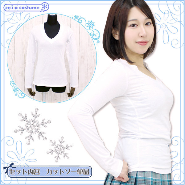 商品番号:cm1157 アメリカ製の高品質な綿100%レディースVネック長袖カットソー 白 Mサイズ