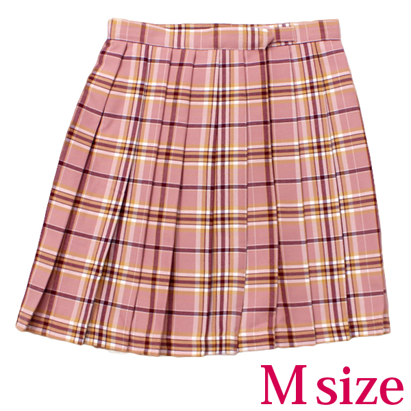 商品番号:cm1181 ポケット付きのチェック柄プリーツスカート単品 ピンク×キャメル Mサイズ