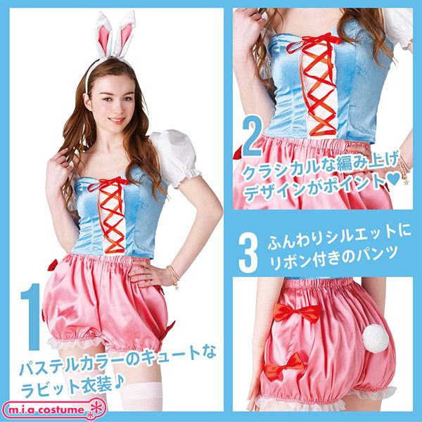 童話から飛び出てきたようにファンシーで可愛いバニーコスプレ。人生をワクワクさせるコスプレブランド「Newyork Wish」から登場!お尻に丸く真っ白な尻尾が付いたドロワーズのサイドに真っ赤なリボンを2つ飾り付け、パステルカラーで華やかに仕上げた兎カチューシャ付きのハロウィン仮装。フロントの編み上げデザインも可愛くてキュンとします♪※水洗い&塩素系漂白剤不可※水洗い不可、塩素系漂白剤による漂白不可、アイロンは低温で当て布使用、石油系ドライクリーニング可、色落ちの可能性があります。※こちらの商品は在庫の状況によりお届けまでに4日〜7日程度かかる場合がございます。