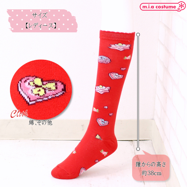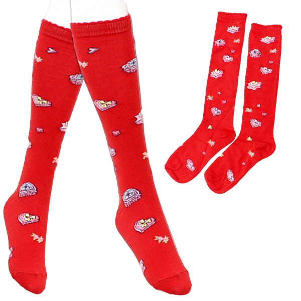 商品番号:cm1203 クッキー柄ロリータハイソックス単品 赤