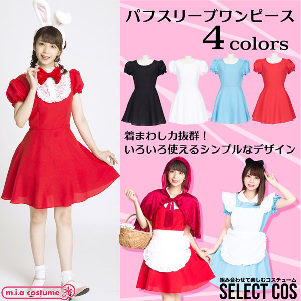 着回し力の高いコスプレ衣装をお探しならおまかせ!パフスリーブワンピースはガーリーなテイストにぴったり。付け襟、フード付きケープ、エプロンを合わせれば、可愛い赤ずきんに変身!セレクトしてオリジナルのコーディネートが楽しめちゃうのが自慢です。他にもセレクトシリーズの小物を合わせて色々なコスプレを楽しんでね♪※洗濯機不可、弱い手洗い可、塩素系漂白剤による漂白不可、アイロンは中温で当て布使用、石油系ドライクリーニング可