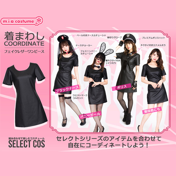着回し力が高すぎる!セレクトすることでオリジナルのコーディネートが楽しめちゃうコスプレシリーズ!フェイクレザーワンピースはクールなテイストにぴったり。ポリスハット、付け襟を合わせれば、魅力的なポリスに変身♪他にもセレクトシリーズの小物を合わせて色々なコスプレを楽しんでね。※洗濯不可、塩素系漂白剤による漂白不可、アイロン不可、ドライクリーニング不可