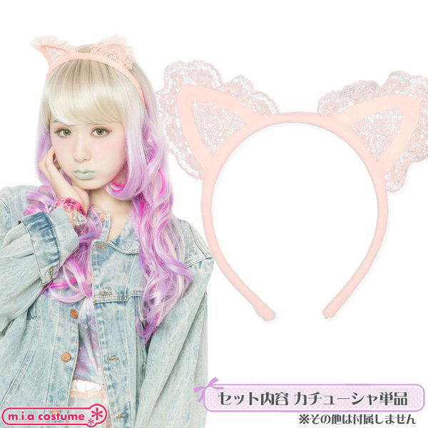 原宿系人気モデル「AMO」がプロデュースする新ブランド「LUNATICLEMONYLOLLIPOP」からレーシィーキャット(ベビーピンク)が登場。繊細なレースがポイントの猫耳カチューシャで、淡いベビーピンクカラーがとってもキュートな印象にしてくれます♪明るいカラーのウィッグと合わせて着用すれば、さらに可愛さUP!コスプレ小物として持っておきたい一品です♪