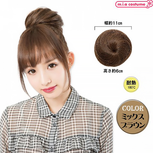 着脱式で簡単に使えるおだんごウィッグです。サイズ調節のアジャスター付きで使い勝手は抜群!簡単にイメチェンできるのが嬉しいポイントです♪二つ使えばキュートなクマさんヘアーにも!ライブやテーマパークへのおでかけにもおススメ♪カラーは地毛に馴染みやすいミックスブラウンです。※商品は一つ入りです