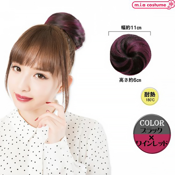 グラデーションもの入ったウィッグをお探しならこちら!着脱式のおだんごウィッグで簡単イメチェン♪サイズ調節用のアジャスター付きで簡単にお使いいただけるウィッグです。二つ使えばキュートなクマさんヘアーにも!ポイントカラーが可愛いブラック×ワインレッドです。※商品は一つ入りです