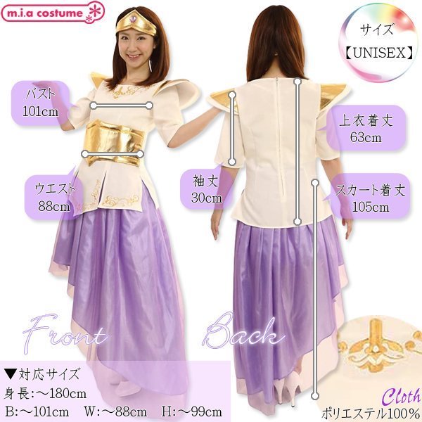 男女兼用サイズ:身長〜180cm・B〜101cm・W〜88cm・H〜99cm・着丈(上衣63cm・スカート105cm)・袖丈30cm) セット内容:上衣(背中心ファスナー)、スカート(ウエストゴム)、ヘアバンド 素材:ポリエステル100%