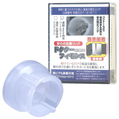 仮性包茎の悩みを解決!運動・性交時に最適な簡単装着のドクターフィモシス!特許に裏づけされた安心の包茎矯正リング。尿道に合わせた「くぼみ」があり、装着したままの排尿も可能。ハードホワイトタイプは伸びを抑えて締付け強度を増強したやや硬めの素材。圧迫感を軽減し痛くなりにくく、しかも脱落の心配もありません。