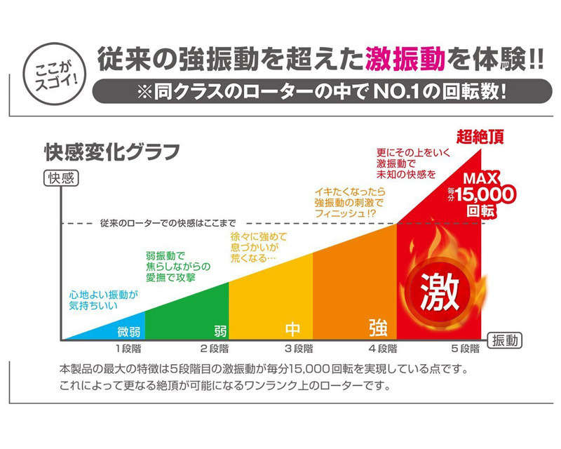 角度キープ可能なフレキシブルヘッドで狙い撃ち!ハイパワーな超「激」振動を搭載したピンポイント刺激用ローター。●長さ約4cm×1.5cmのスリムヘッド●お肌に優しいシリコン加工●最大毎分15000回転の激振動搭載●長さ8.5cmのネックは角度固定可●手に馴染みやすいグリップ部●ワンボタンで強弱5段階切り替え可●生活防水設計で衛生的。くねくねと曲げられるネック部分は、ココ!という角度に調整して固定できるのでピンポイント刺激も思いのまま!他シリーズ同様、従来のローターを凌ぐ超絶ハイパワーをぜひ体感してください。