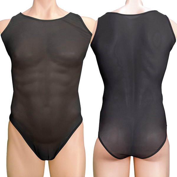紳士の嗜みに!スタイリッシュなレオタードタイプの男性用インナーウエア。●「DANDY CLUB」シリーズNo.63●透け感がセクシーなブラック地●ノースリーブ&フルバックタイプ●男性用フリーサイズ。吸い付くようなフィット感で着心地も抜群のメンズレオタード!美しいボディラインをアピールできるセクシーな男性用ランジェリーです。