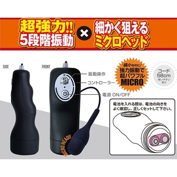 パッケージ:16.5×8.5×3.5cm 本体:ローター2.8×1.5cm コード58cm 電池:単四電池×2本使用