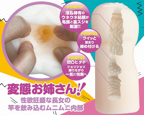 スケベ四姉妹と中出しSEX!性欲旺盛な変態お姉さん長女ユイの淫乱オナホール「おなシスタ01 結(YUI)」。『おなガール』の血を受け継いだ新シリーズ『おなシスタ』が登場!竿を飲み込むムニムニの内部は、淫乱特有のうねうね粘膜が亀頭と裏スジを刺激!クイッと狭まり締め付ける中間部を抜けると、最奥の凹凸ヒダがジョリジョリと擦りながら一気に悦楽へと誘います。