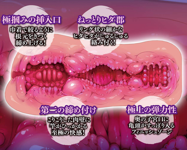 最高の快感を与えてくれる女性器を名器と言いますが、こちらの名器百景 巾着は膣の入り口が狭い締まりバッチリな名器仕様のため、極上の膣内を手軽に体験できるのが特徴です。挿入口からアナタのムスコをキツく締め上げ中央の締め付けゾーンで竿全体を刺激!ストロークごとに快感は高まり最深部の子宮口へ絶頂フィニッシュ。竿の根本から先端まで巾着のように丸っと包み込む気持ち良さが特徴的な非貫通オナホです。素材は伸縮性や耐久性が高く、洗浄もしやすいので繰り返し清潔にお使いいただけます!