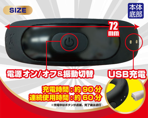 パッケージ:19.0×9.7×3.7cm 本体:全長9.2cm・内径3.2cm・厚み1.8cm セット内容:本体、充電ケーブル USB充電式