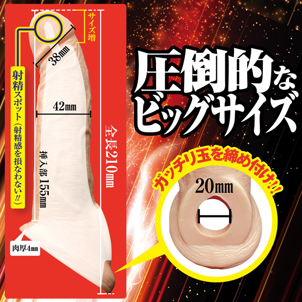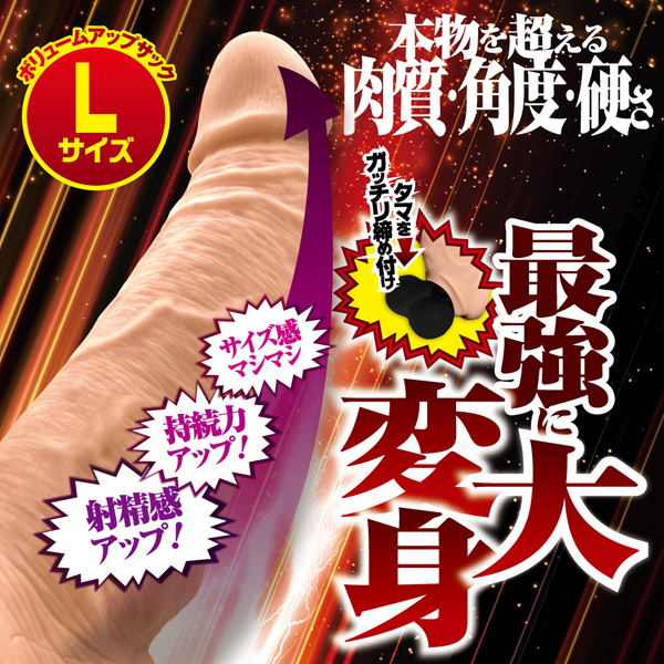 このサックで誰でも巨根になれる!「キングボーイ (Lサイズ)」。サイズ感・持久力・射精感もアップ!伸縮性もあるエラストマー素材でありながら、タマをガッチリ締め付ける装着感の良さ。フリーサイズなのでどんな方も装着できます♪サック機能も一体化し、男性機能をサポート!射精スポットを配置したことで、快感度もさらにアップ。いつものプレイもグッと盛り上がる、漲る男性力をあなたに!Gスポット・ポルチオも十分に刺激でき理想的な亀頭のフォルムと女性が満足する太さを実現。