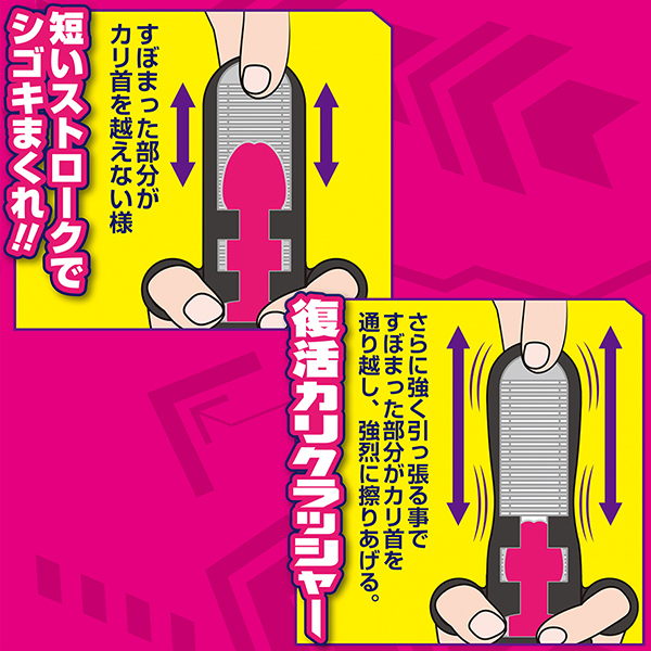 長い沈黙を破りスライドシリーズは遂に新次元へ突入!!完全受け身のイカされるオナホール、カリ首刺激特化型のキトゥースライド登場!!ヒダの伸縮で勝手にシゴかれる!!鬼ゾリ刺激の密着感。短いストロークでシゴきまくれば、カリ首を強烈に擦り上げる!!本体を伸ばさず手に持ってシコシコすれば通常ホールとして、引っ張って放してをくり返せば亀頭鍛錬グッズとしても使える。時代は「イク」から「イカされる」オナホールへ…亀頭を刺激し、カリ首をイジリ倒せ!!