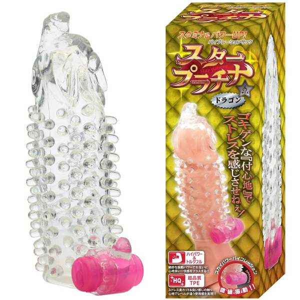ロングプレイとパートナーへのシゲキUPが楽しめる爆裂振動サック登場!根元部分にワンタッチでON/OFF操作出来る高速振動マイクロモーター搭載!局部にピンポイント刺激を楽しめます。龍の如く激しい突起が出し挿れする度にズリズリと刺激して、最奥部を絶妙に責め立てるドラゴンスタイル