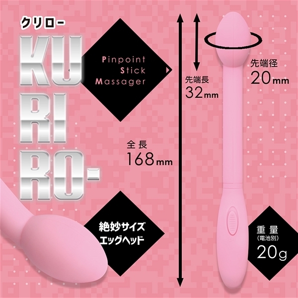 操作性はシンプルな振動オンオフのみの「クリロー」。こちらは女性に人気のピンクカラーで、気持ちいい部分を優しく振動責めできる超軽量なバイブスティックです♪スマート形状で握りやすく、コンパクトで使い勝手の良い女性のセルフプレジャーアイテム!持ちやすくて軽いので、普段のセルフ使いに大活躍すること間違いなしです♪電源は単4電池1本となります。