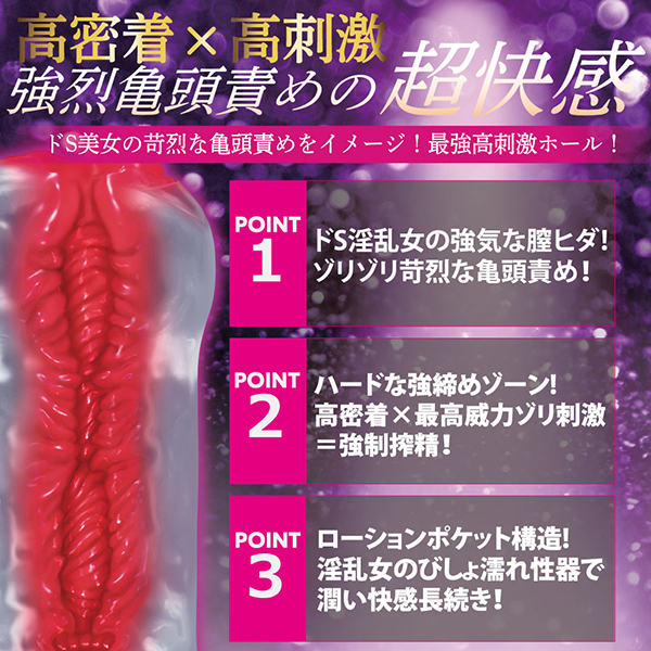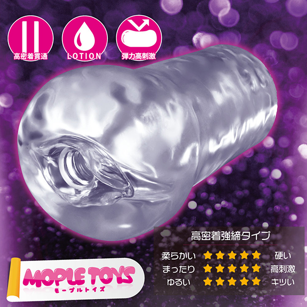 待望のSexy Mateハード版登場!!高密着の包容感と、貫通型ならではのスムーズなストローク感を併せ持ったハイブリッドホールです。挿入口は前と後ろで形状が違い、アナル側はキュっとすぼまり締め付け感もアップ。中間のくびれ部分とあわせて俵締め効果を発揮します。本体中央部にはハードな強締めゾーンが設置され小型ホールとは思えないような刺激を感じさせます。