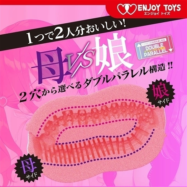 1つで2つの快感を楽しめるダブルパラレル構造。娘のツブイボと母のゾリゾリヒダの両方が楽しめる!ダブルスハードに使用されているのは刺激強めの硬弾力「タフスキン」素材。しっかり刺激を与える硬度、挿れ心地の良い高弾力性。すべてを兼ね備えた究極のハード素材です。ダブルス母娘は一つで無数のイボに包まれるキツめの下付き娘と横ヒダが絡み付くようなまったりとした上付き母の両方が楽しめます。貫通タイプなので【母入り口】→【娘穴】や【娘入り口】→【母穴】など多数の刺激が楽しめます。高品質ローションが付属しています。