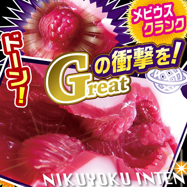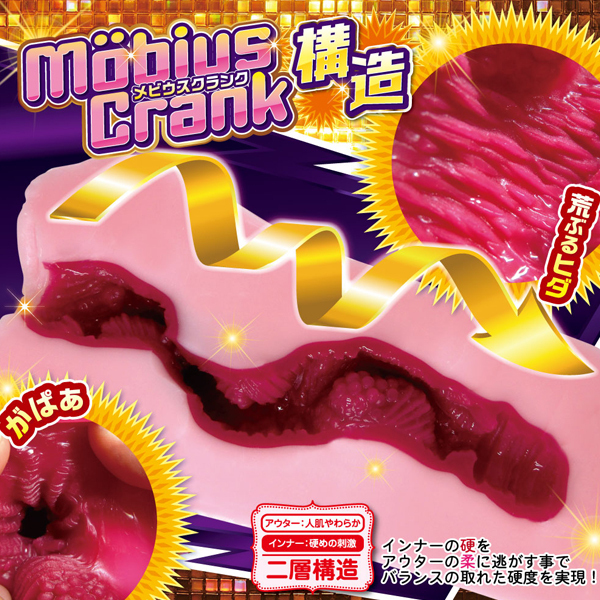 【非貫通/ローション付】ガツン!っと大イボ刺激がぐるりと攻める。インナーの硬をアウターの柔で程よく逃がす充血二層式。荒ぶるヒダ、衝撃の大イボ、それらはメビウスクランク構造によりぐるりと捻じり狂う。捻じれによる締めつけ、大イボによるインパクトで揺るがない快楽に堕ちていく。グレイトな刺激、衝撃の快感を求めるあなたに淫乱天使が舞い降りる。アウター:人肌やわらかインナー:硬めの刺激