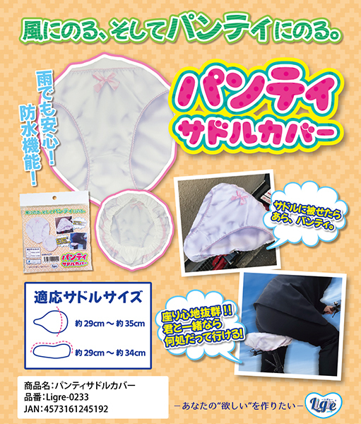 思わずドキッ!大人気パンティシリーズからサドルカバーが登場♪フルバックパンティを自転車のサドルカバーにしちゃったジョークグッズです!座り心地も抜群で、防水機能付き。パンティに座って颯爽と走る姿はとっても軽快かも!