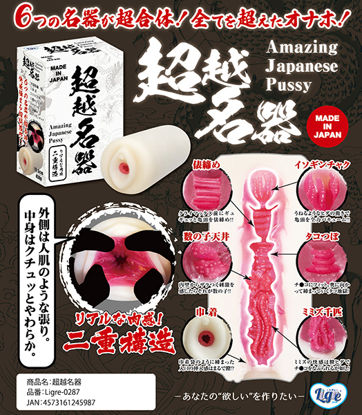 完全なる日本の名器!「超越名器」の登場です!古来より日本の名器と言われる名器…それは!@巾着巾着袋のように、膣の入り口が締まっている名器が巾着!Aミミズ千匹膣のヒダがミミズが動いているように感じるほどのヒダがミミズ千匹!B数の子天井中の上部内壁がザラザラとした物があり、そのザラザラとした部分がが数の子のように感じるのが数の子天井!Cタコつぼ内部が男性器にフィットし、奥の方が締まっていくというのがタコつぼ名器!D俵締め。内部に数か所の締まる部分が存在する。それが俵締め!Eイソギンチャクうねるようなヒダの動きと吸引する名器がイソギンチャクです!この6つの名器が一つに合体した!それが超越名器なのです!名器という名器を超越した最強名器がここに誕生!全ての名器が合体した最終名器システム!これこそが日本が誇る名器オナホです!