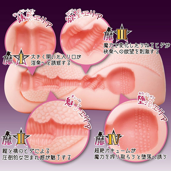 トイズハートのオナホール「ハッピネス」の復刻版として登場した「吸引注意 魔女の誘惑」。大きめサイズの本体は、ベタつかないセーフスキン素材を使用した柔らか感触。広めの内部は絡みつきながら包み込む複雑なヒダ構造!締まった中間部がストロークの度にコリコリと刺激を与えます。さらに、イボを配置した最奥のバキュームエリアで、吸いつきによる超絶刺激も楽しめます。