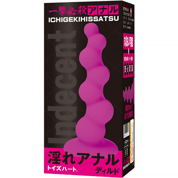 一撃必殺アナル。吸盤付きで自由自在なランダムイボのディルド。継ぎ目の無い1パーツ成形のため丸洗いが出来て清潔的。吸盤付きでしっかり固定、奥に行くほど太くなる為、初心者様のアナル開発にもおすすめです。