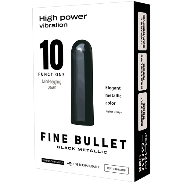 シンプルで使いやすい!スタイリッシュな見た目の弾丸型ローター「FINE BULLET」です。こちらはブラックカラーです♪振動音が小さく10パターンの振動が楽しめて、ボタンもワンプッシュの簡単操作!お風呂でも楽しめる防水仕様で充電式だから超強力なパワーが楽しめる♪充電用USBケーブル付属。ボタン長押しで電源のONとOFFが切り替わるので操作も簡単です♪●メーカー型番:TMTG-002