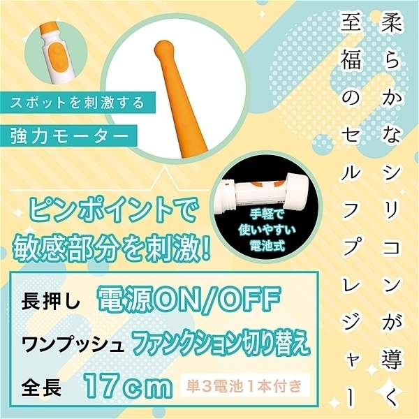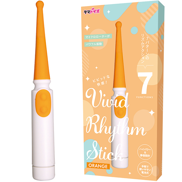 Vivid Rhythm Stick Orange。ビビットな快感!柔らかなシリコンが導く至福のセルフプレジャー、心地良い刺激が深い快感を紡ぎだし柔らかなシリコンがあなたの快楽を包み込む。ピンポイントで敏感部分を刺激!ハイパワー&静音設計、マイクロローターがパワフル振動、7パターンのリズムアクション。