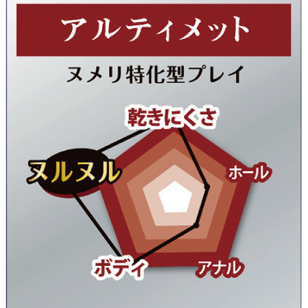ヌメリ感を追求したヌルヌルが持続するプレイローション。品質や使用感はもちろん、安全面でも医科向け仕様(医療機器ガイドラインに準じた安全性テスト済)のハイグレード処方で、とことんこだわった水溶性プレイローション。弱酸性・無着色・無香料。日本製<成分>水、グリセリン、PG、親水性ポリマー、保存料