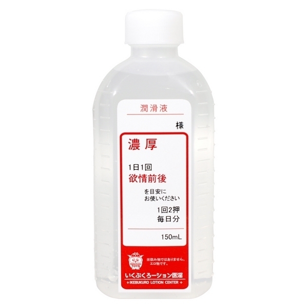 いけぶくろーション医淫より、あなたに元気を!桃の香り付き高粘度ローション「濃厚ローション 150ml」。●飲み薬風のボトル容器入り●程良いサイズの内容量150ml●とろりと濃厚な高粘度タイプ●ほのかに香る桃の匂い付き●お肌に優しい成分プラセンタ●ヒアルロン酸・コラーゲン配合。たっぷり潤う濃厚タイプ!シロップ薬のようなボトル容器に入った桃の香り付きローション。用法・用量を守って欲情前後を目安にご使用下さいね。