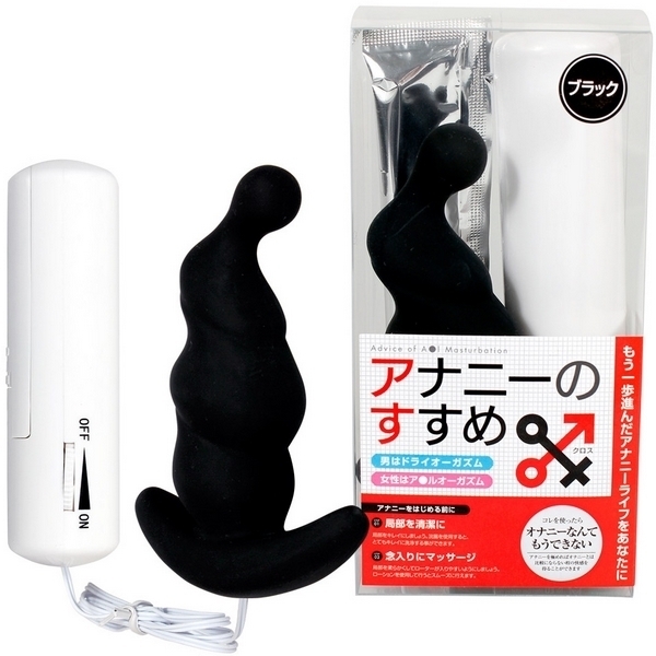 大好評の「アナニーのすすめ」が男女兼用になって登場!電動アナルグッズ「アナニーのすすめX(クロス)ブラック」。●本体挿入長8cm、最大径3.2cm●若干太め仕様のブラックカラー●ストッパー兼グリップ付き●無段階強弱の振動機能を搭載●簡単ダイヤル式コントローラー●単四電池×3本付属(動作確認用)●パウチローション12mlもセット。更なるドライオーガズムの世界へようこそ!ピンクタイプ(v01360)に比べて若干太めに仕上げたブラックタイプは、アナニーの快感に目覚めた方にお勧めなサイズ。男性女性問わず使える凸凹フォルムのアナルバイブで、もう一歩先へ進んだアナニーライフをご提供します。
