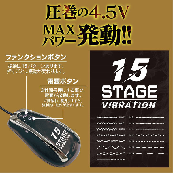 弾丸のようなフォルムが特徴の電動プラグが新登場!これまでにない全く新しい発想のアナルプラグで、ローターを装着することにより、拡張と振動の体験を一つで出来るようになりました♪こちらのマスターパワー15は、オーソドックスな初心者向けサイズのプラグを採用し、どなたでもチャレンジしていただけます。15段階もの振動変化があるローターを装備!多種多様な快感を楽しめますので、アナル初心者はもちろん、中級者や上級者でも十分にお楽しみいただけます。