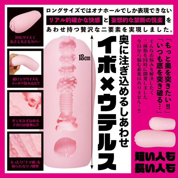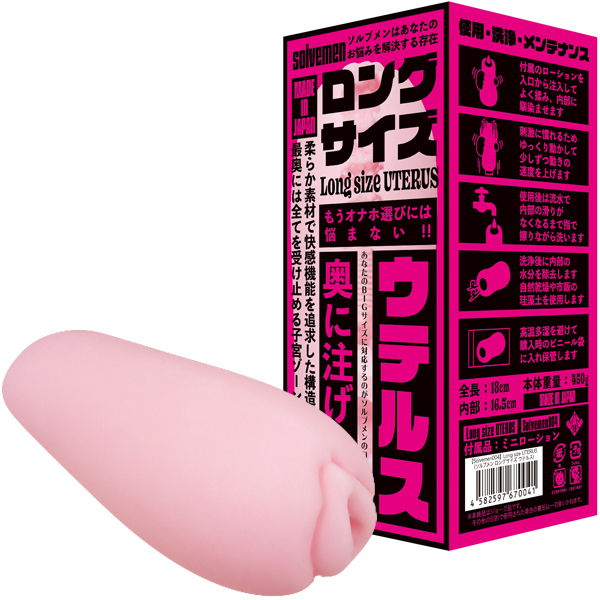 「底を突き破ってしまう…」という長い男性のお悩みに、イボ×ウテルス構造のロングオナホ(ローション付)。悩める男性のためのグッズメーカー「Solvemen(ソルブメン)」から、全長18cmのビッグサイズが登場!重量は肉厚な450g、柔らかな素材ですっぽり包み込み、長さと太さをダブルでカバー♪まったりナマ感が気持ちいいツブ膣壁と最奥にある子宮口へ注ぎ込む感覚をお楽しみください。日本製