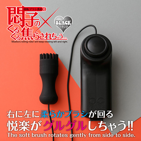 ブラシのヘッドが右に左に回転してピンポイントに刺激!シリコン製のやわらか突起が無数に配置された回転タイプのローター「悶子のくるくる焦らされちゃう」です。ブラックカラーがシックな雰囲気で回転の強弱は10段階から選択可能!クリや乳首などの気持ちいいところを左右に回転する無数のシリコン突起で刺激。これまでの普通のローターでは感じられないイカせ技が楽しめます♪回転の動きは左右を切り替えられて、途中で反転させたり左右に連続して切り替わるモードも楽しめます。フェザータッチのような回転刺激や焦らしプレイ、さらにはローションとの合せ技でも気持ちよさが倍増しそうですね♪電源は単四電池4本を使用した電池式なので簡単に扱えて、コントローラーの操作も簡単です。普通のローターにはない新感覚の気持ちよさをぜひお楽しみください♪