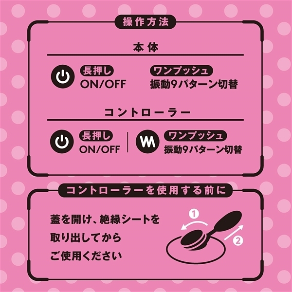 こっそり遊べる!超静音≦45dB、プレイの幅がグンッ!と広がる完全防水&遠隔操作可能な静音ローター!思わず声が出てしまう程のパワフルな9パターンの振動に対し、静音性にもきちんと配慮した造りなので、お風呂場でも道端でも…いろんな場所でレッツプレイ!完全防水仕様なので使用後の丸洗いも可能で清潔に保てます。シリコン紐付きなので、取り出しもラクラクです。どこでもサカって絶対絶頂!●カラー:ピンク